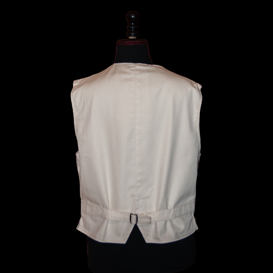 Gilet en laine écru emblématique des savoyards brodé d’une edelweiss ou d’une gentiane. Forme tailleur, le dos est doublé pour plus de confort. 2 poches en bas + 1 poche poitrine et 1 poche intérieur – Existe en tour de buste de 72 cm à 112 cm
